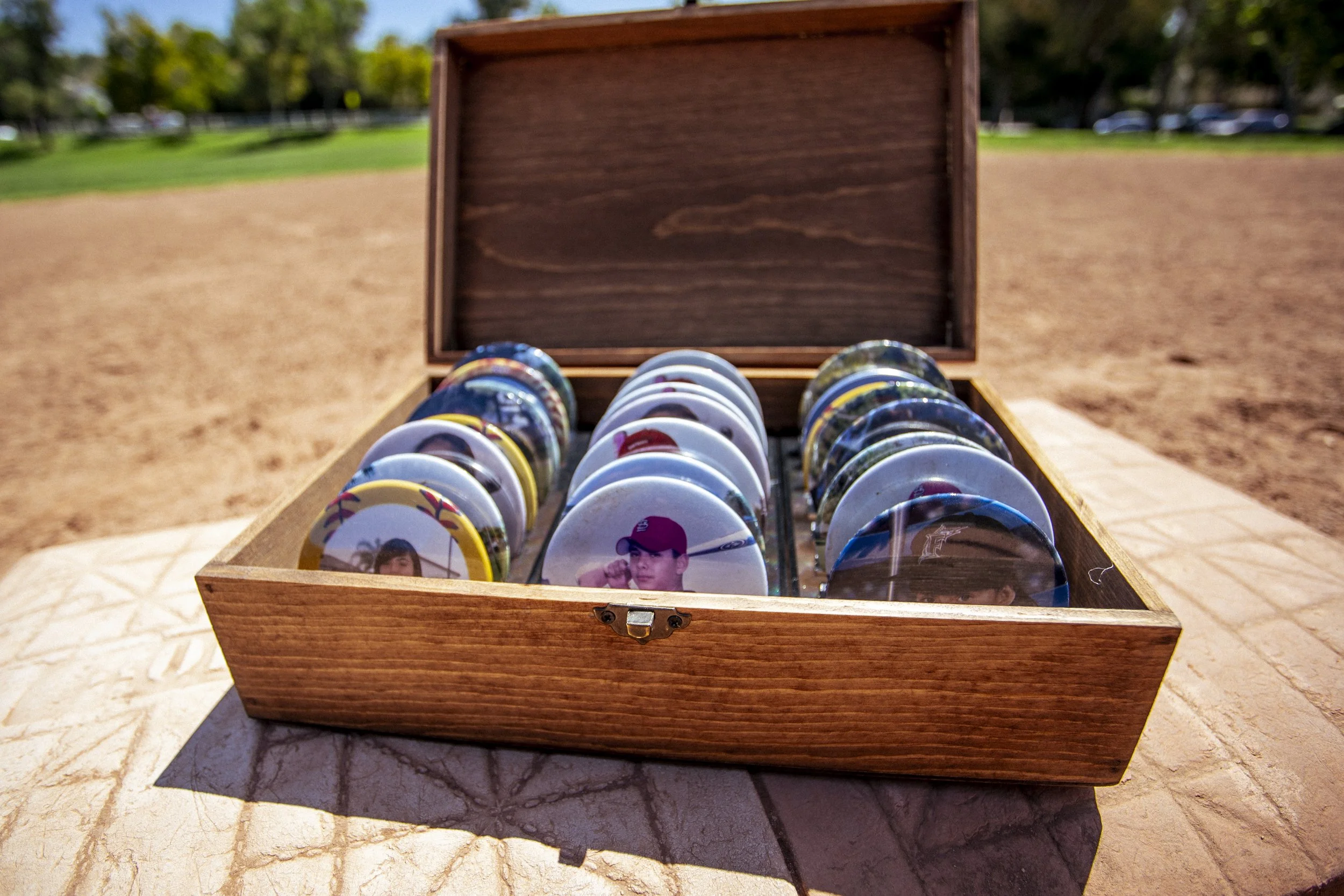 The Photo Button Display Case is a display-and-storage box designed for 3” photo buttons and provides the ideal storage for protecting, organizing, preserving and displaying your precious buttons.